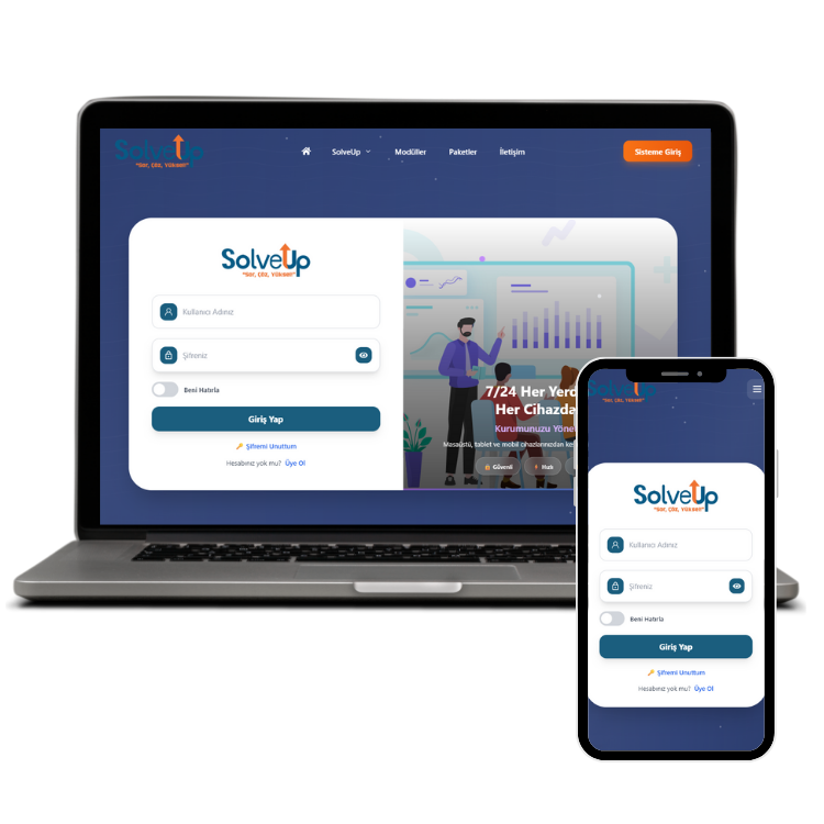 Solve Up'ı ücretsiz deneyin ve kurumunuzu dijitalleştirin. Uzman ekibimiz size özel bir demo sunumu gerçekleştirecek.